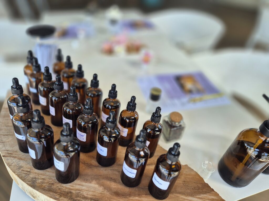 Les essences et matières premières utilisées lors des ateliers peuvent contenir des substances allergènes ou photosensibilisantes. Non recommandé pour les personnes présentant des problèmes d’allergie de peau. Merci de nous signaler toute allergie lors de la réservation.